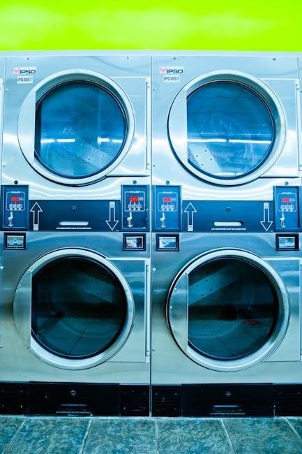 Achieving Stability: Utilize a spirit level to verify the machine’s levelness. Adjust the adjustable feet at the base of the machine until it is perfectly level‚ both front-to-back and side-to-side. Proper leveling minimizes vibration and noise during operation‚ extending the machine’s lifespan. Secure the locking nuts on the feet after leveling to prevent accidental movement. An unstable machine can ‘walk’ during cycles‚ causing damage.